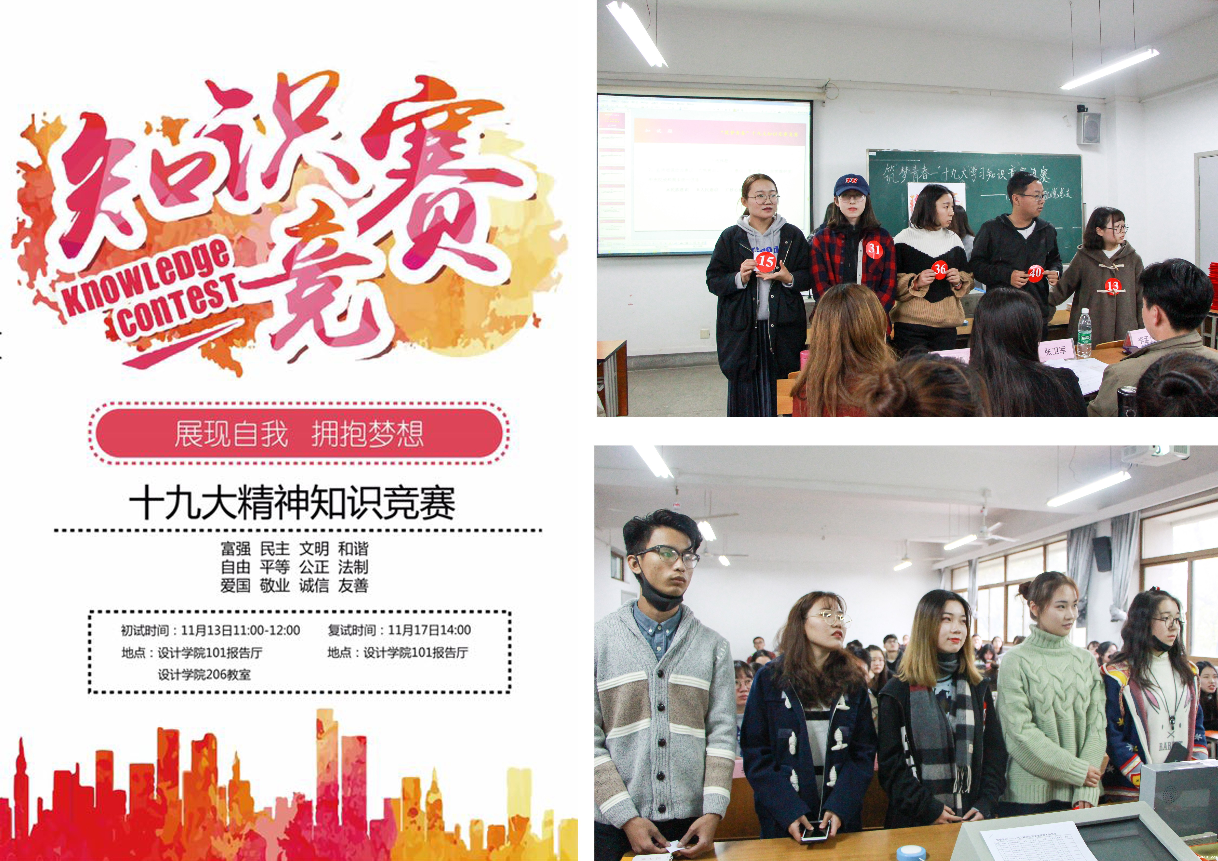 2143次阅读 刚刚胜利闭幕的党的十九大,把习近平新时代中国特色社会主义思想写入党章,吹响了夺取新时代中国特色社会主义伟大胜利的前进号角。新思想引领新时代,新使命开启新征程。为引领广大青年学生深入学习贯彻党的十九大精神,深入领会习近平新时代中国特色社会主义思想,加强当代大学生对党的认知和国家使命感,争取在实现中华民族伟大复兴中国梦的实践中建功立业。9游体育平台设立了“学习十九大精神”宣传月,以“深入学习十九大,砥砺前行创未来”为主题,开展了“九个一”系列活动,即一场知识竞赛、一堂主题班会、一次观影活动、一次学习考察、一场演讲比赛、一场座谈会、一次征文活动、一场主题展览、一台文艺晚会。