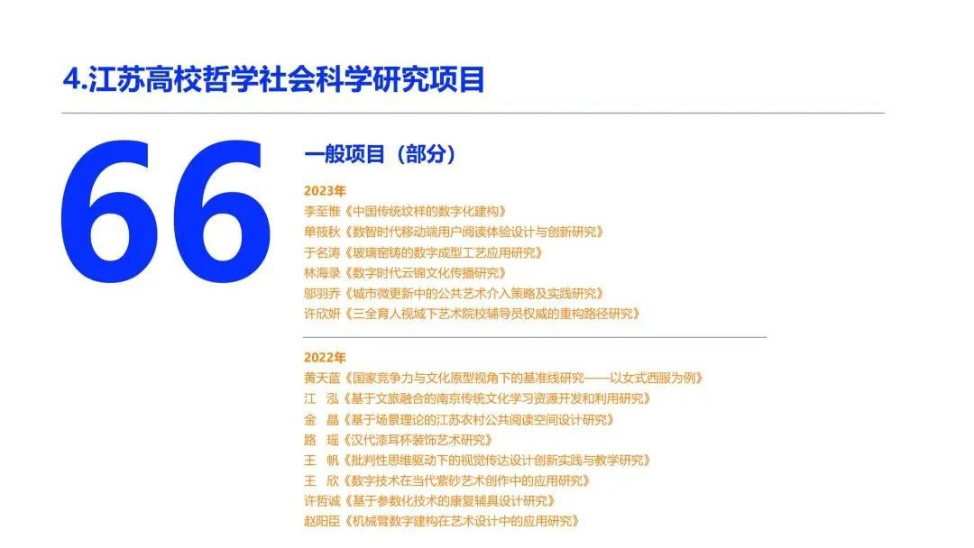 熊嫕副院长回顾和梳理了学院建制以来的科研和研究生工作。她指出,2023年学院高度重视科研工作,强化顶层设计、整合资源、发挥优势,加强“有组织科研”并取得了重要突破。科研项目方面,共获批国家科研课题3项,其中重点项目1项,一般项目2项;省部级科研课题4项;省哲社优秀成果奖1项。研究生教学成果方面,获批高等教育(研究生)国家级教学成果奖1项,研究生教育教学改革重点课题1项,研究生科研创新实践活动项目1项。未来五年,学院将继续立足中国设计学学科体系、学术体系、话语体系的构建与传播推广,围绕国家文艺工作战略部署,思考中国设计历史、理论与实践的创新路径与国际价值。
