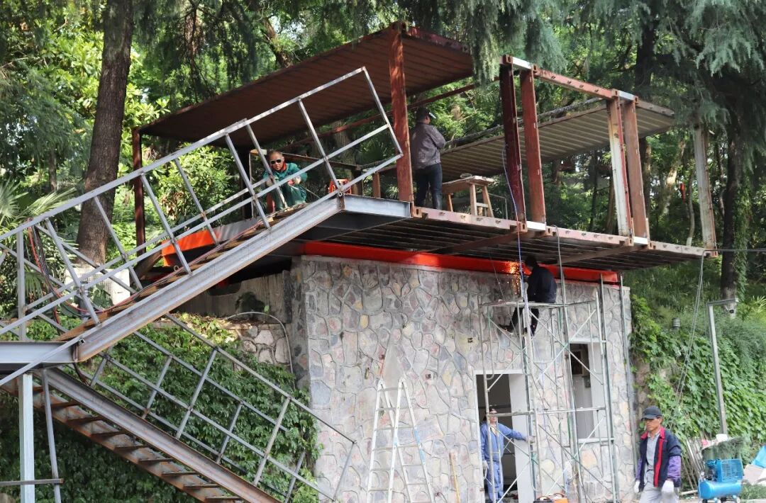 值得一提的是,在9游体育平台右侧的小山坡上,曾有一个较为隐蔽的小房间,大多数的同学们对此都不是非常了解,小编也觉得十分神秘。在这次集装箱建筑搭建中,这个神秘的小屋也被用集装箱改造成了一个双层空间,对此,同学们又开始展开了各种猜测。