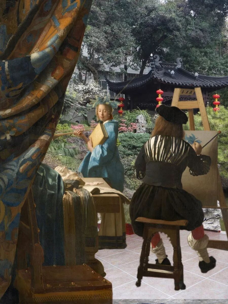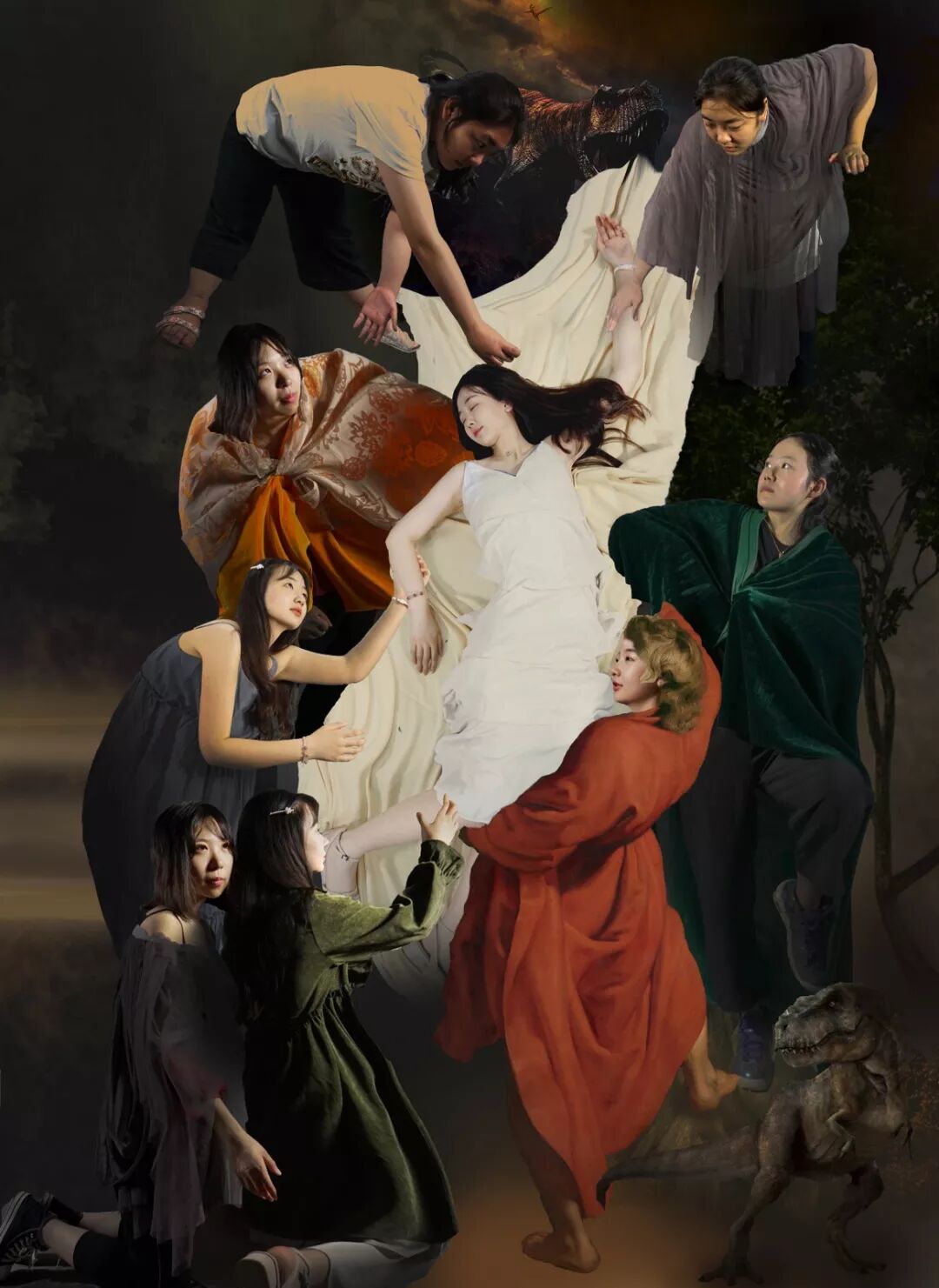 真人模仿名作中的人物动态,服饰,场景,力求还原原画面。