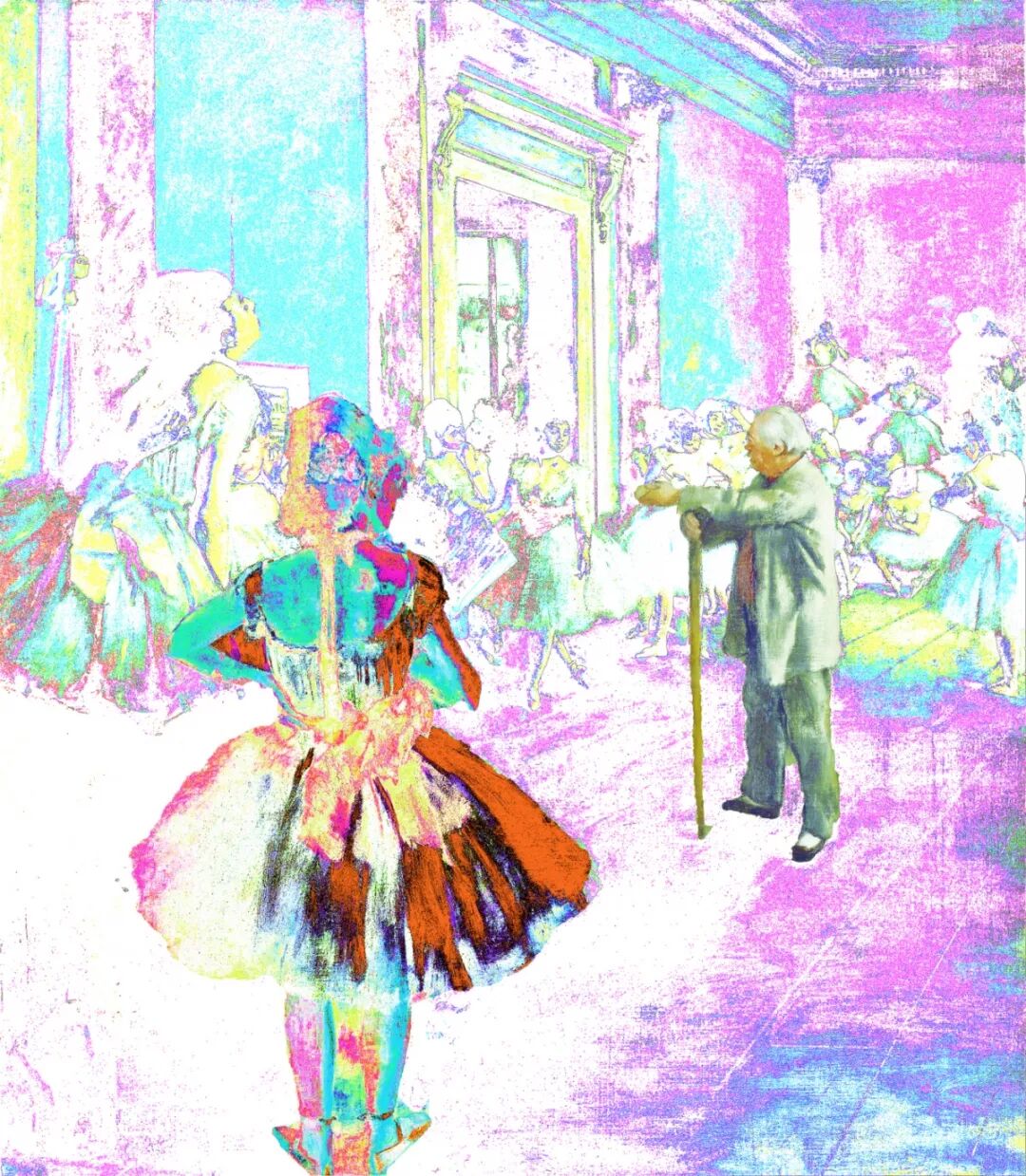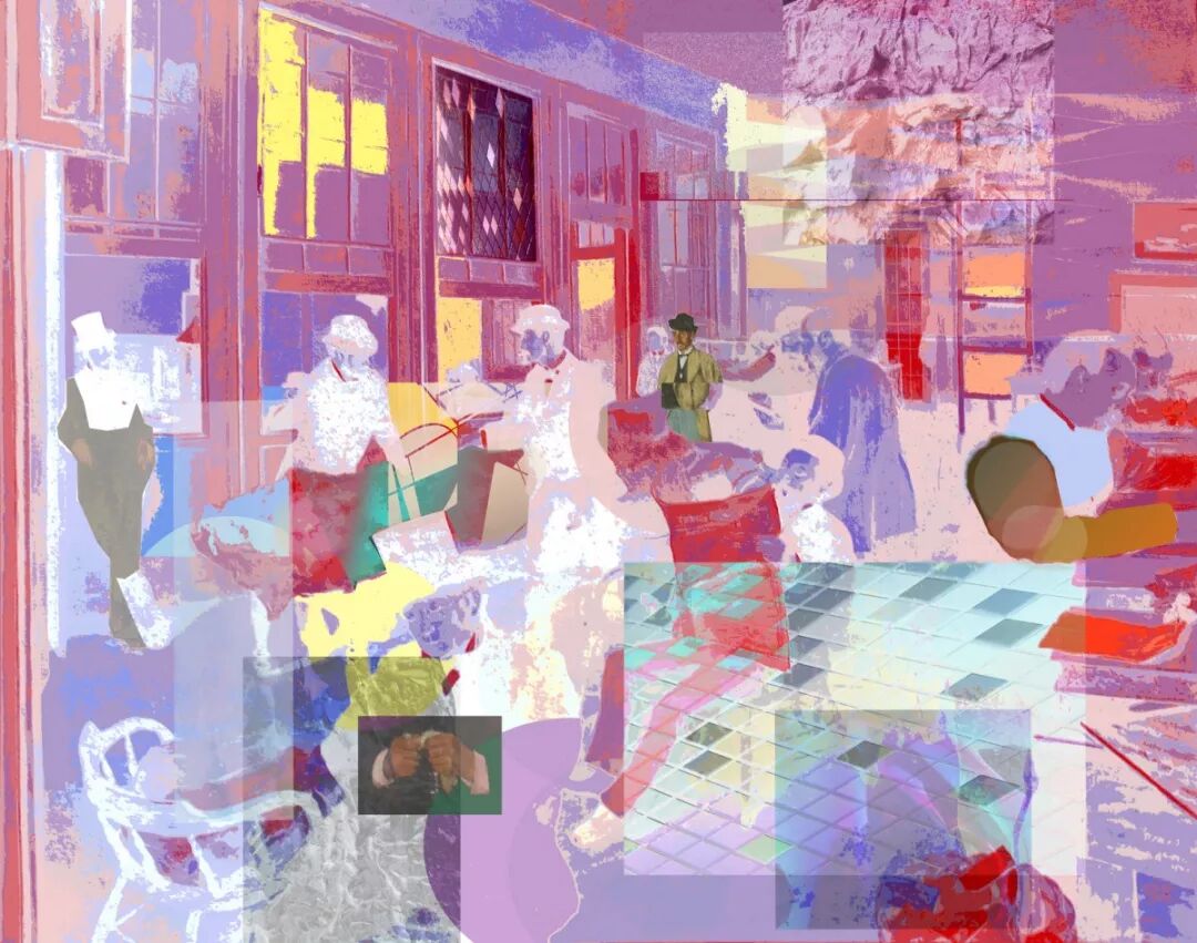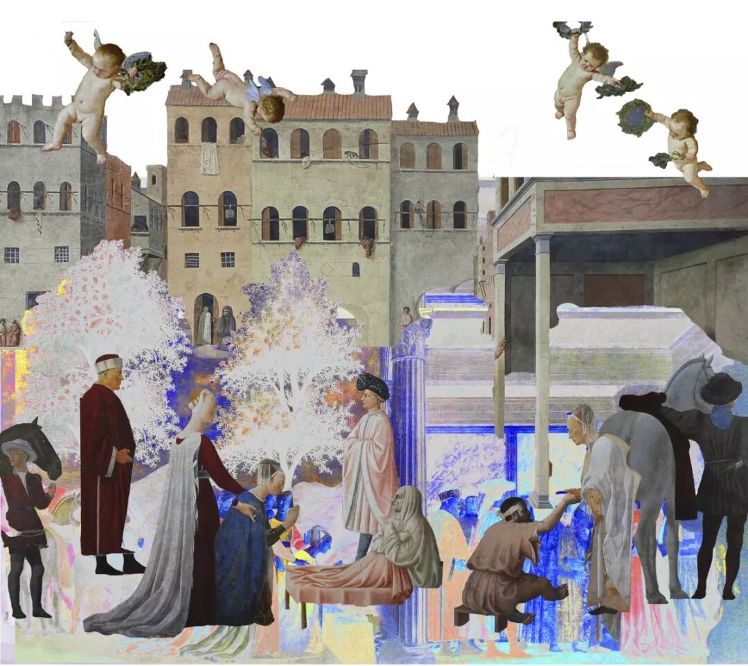 作品的内容可以是单独一幅画中元素移动,放大,缩小,复制,也可以是多幅画面元素筛选、拼合、排列在一张画面内。