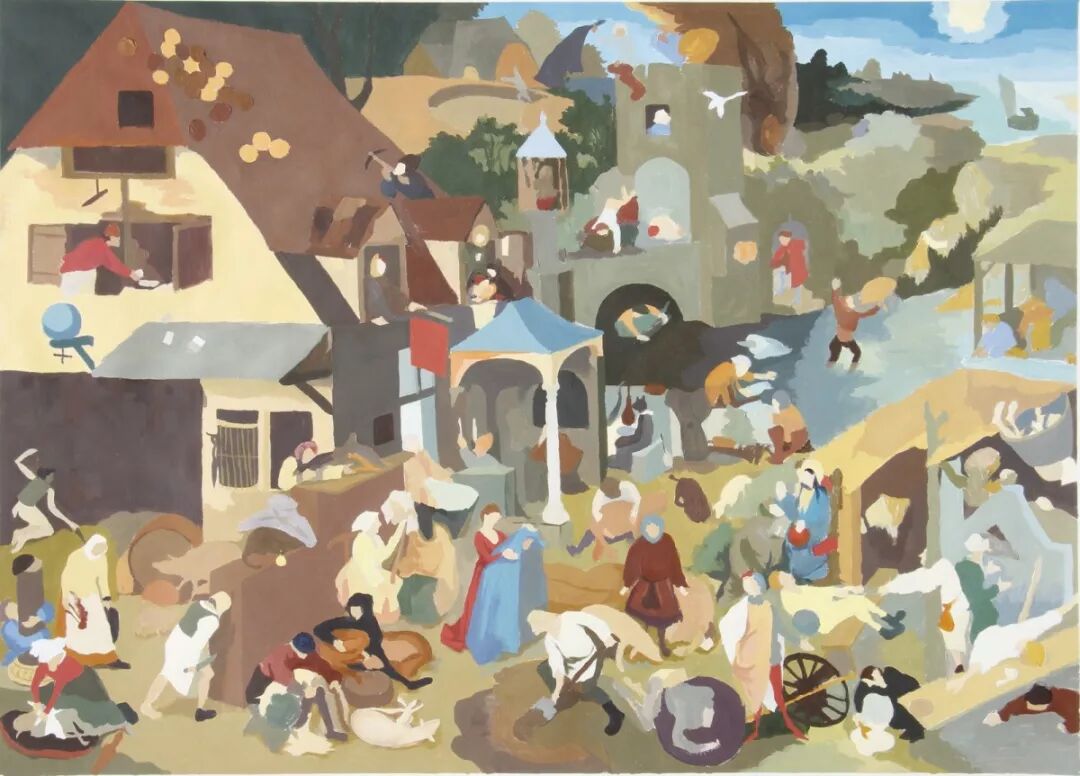 对经典大师名作的色彩进行概括处理。例如,相近的颜色可用同种颜色概括,降低明度,提高纯度。