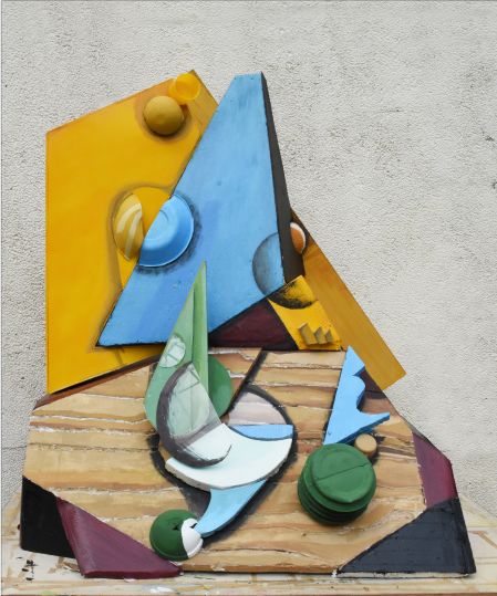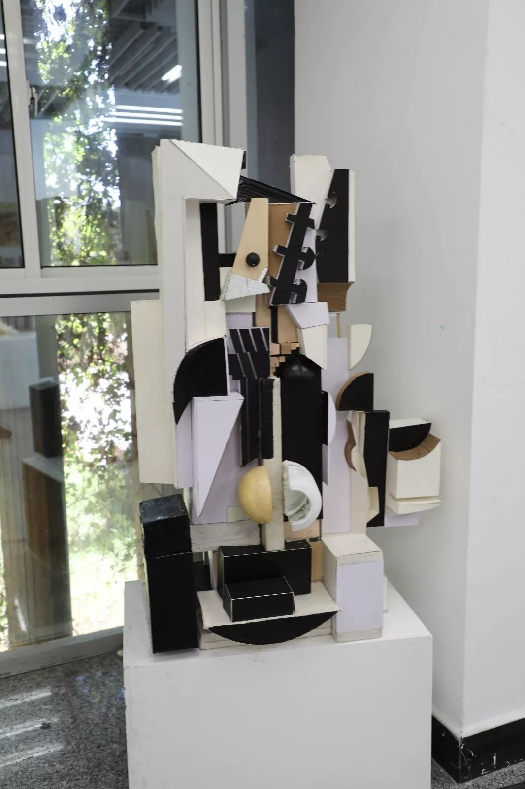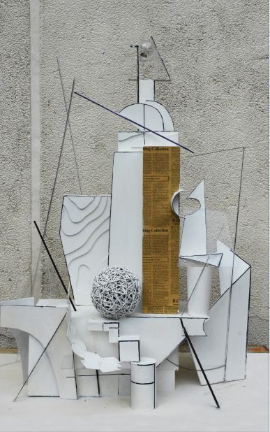 学习、研究勃拉克、毕加索、格里斯等立体主义艺术家的静物绘画作品,选择其中一幅,对其进行三维表现。使平面绘画变成真实的立体形态,并呈现出层次分明、可感知的空间效果。可先使用SU等三维软件进行三维模型创建,以便研究分析作品中每部分形态的尺度关系及对立体形态空间关系进行有效把控,再进行实体模型的制作。制作材料可包含手工制作及现成物等。在复原的“建造”过程中,重视原作的整体空间关系,并以此为基准再现物体的形态特征。