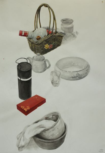 在这一阶段的绘画过程中学生们不断地进行一个问题的深入思考:如何将某种材质的质感表现到极致?如何将不同的质感区分开来?除了思考这些问题以外,学生们还需要利用物体的不同形态进行构图,组成架构丰富、不失内容的画面。